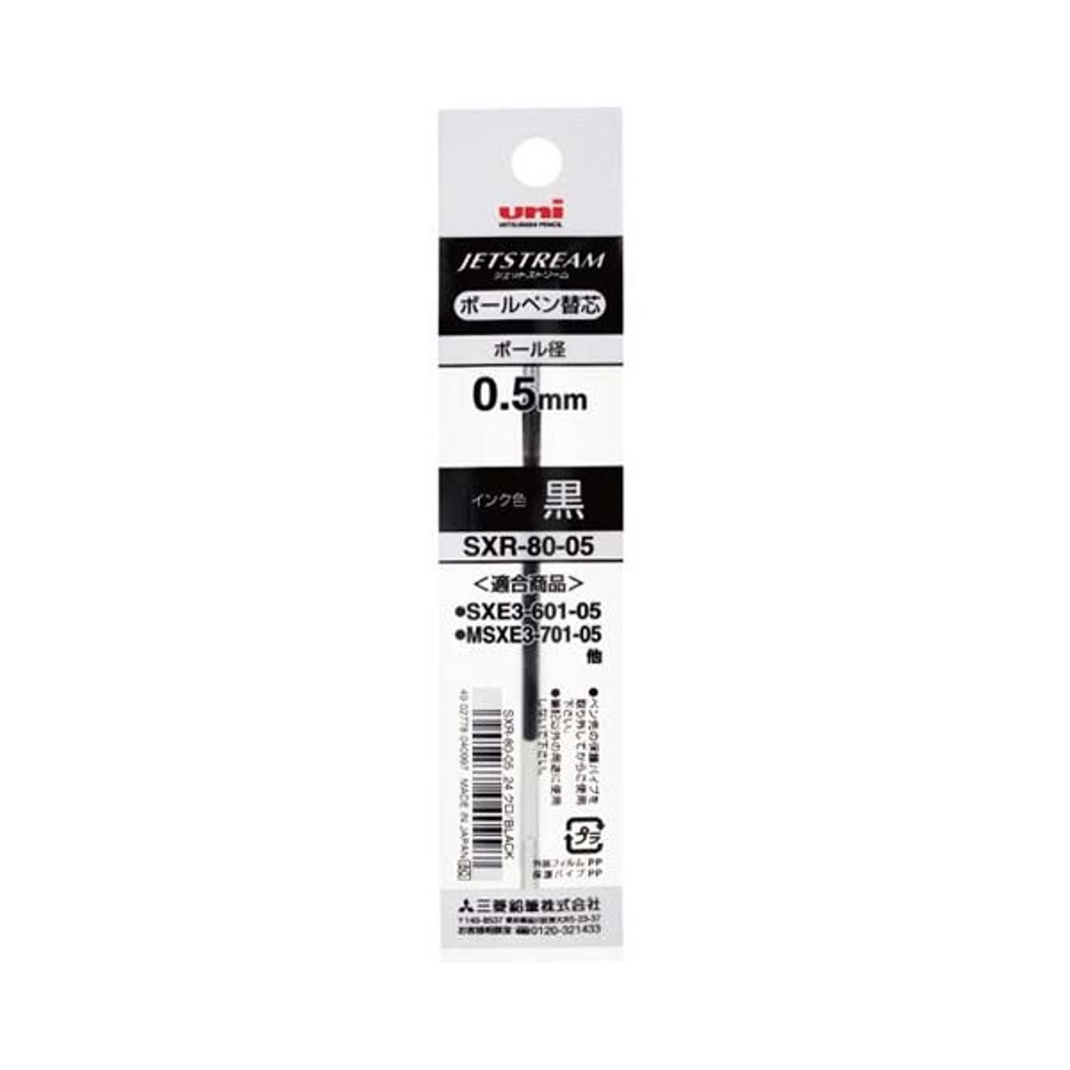 (まとめ) 三菱鉛筆 油性ボールペン替芯 0.5mm 黒 多機能ジェットストリームFシリーズ用 SXR8005.24 1セット(10本) 【×10セット】