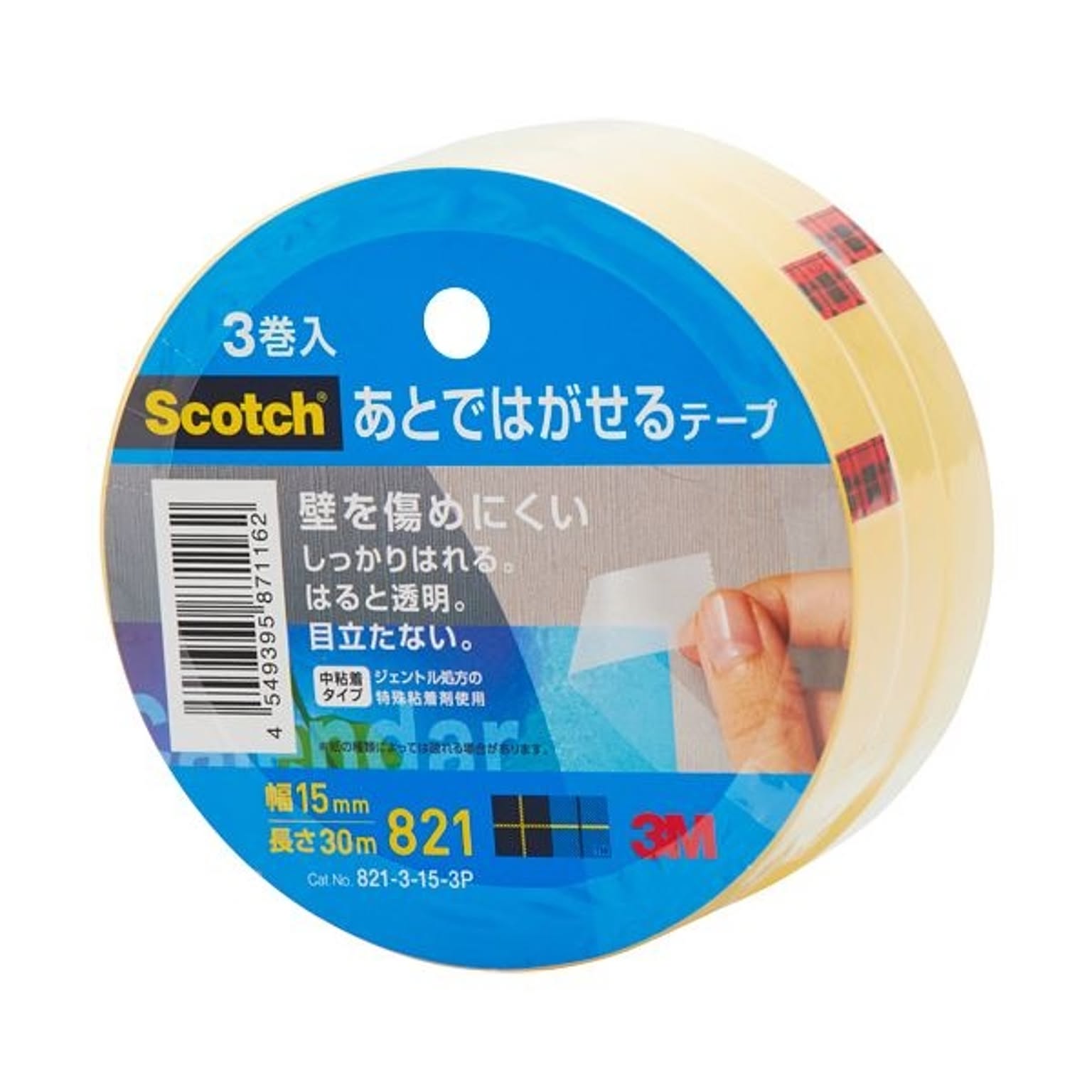 (まとめ) 3M スコッチ あとではがせるテープ大巻 15mm×30m 821-3-15-3P 1パック(3巻) 【×10セット】