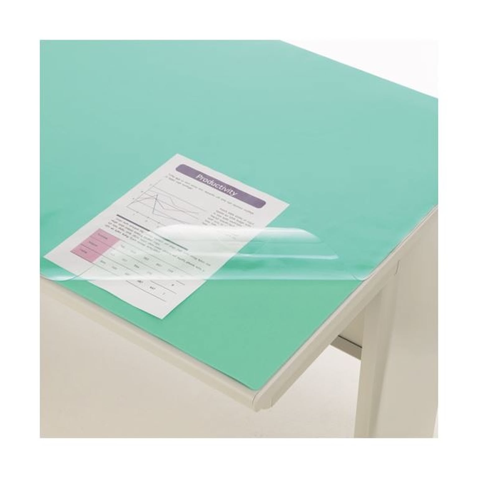 (まとめ) ライオン事務器 デスクマット PVC製光沢仕上 ダブル(グリーンマット付) 1050×720×0.8mm No.5-PE 1枚 【×5セット】