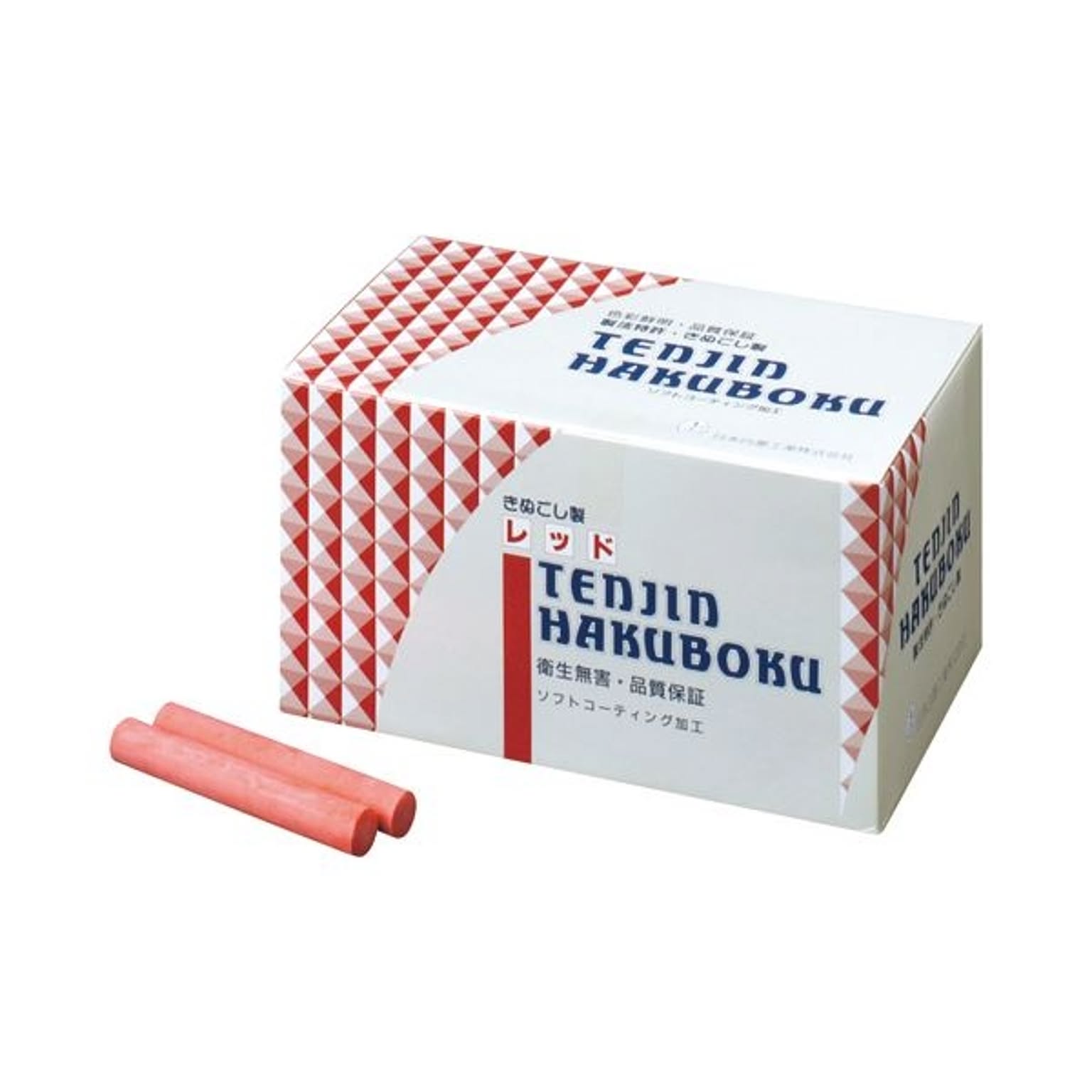 (まとめ) 日本白墨 天神印チョーク(石膏カルシウム製) 赤 CH-2 1箱(100本) 【×10セット】