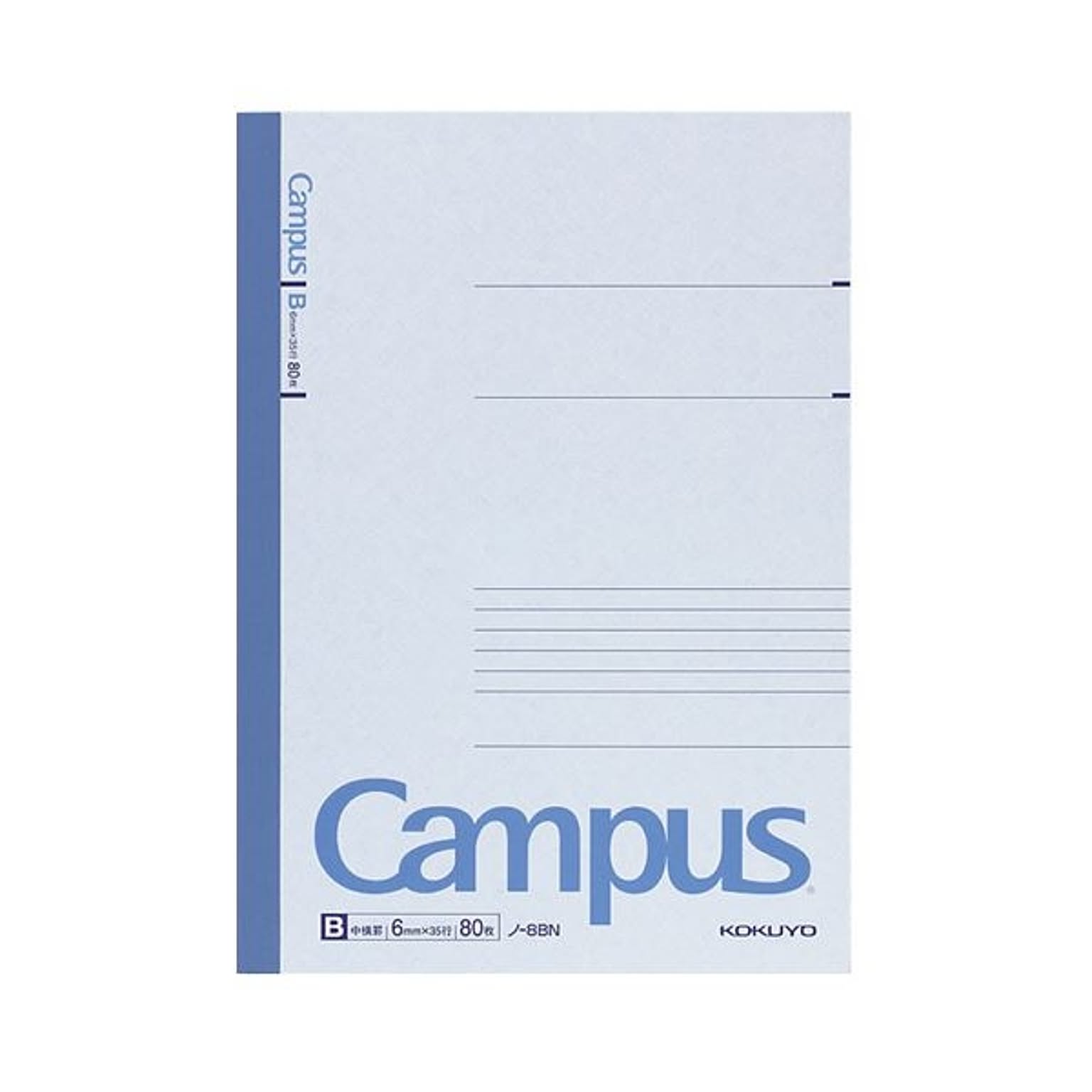 (まとめ) コクヨ キャンパスノート(中横罫) セミB5 B罫 80枚 ノ-8BN 1セット(5冊) 【×10セット】