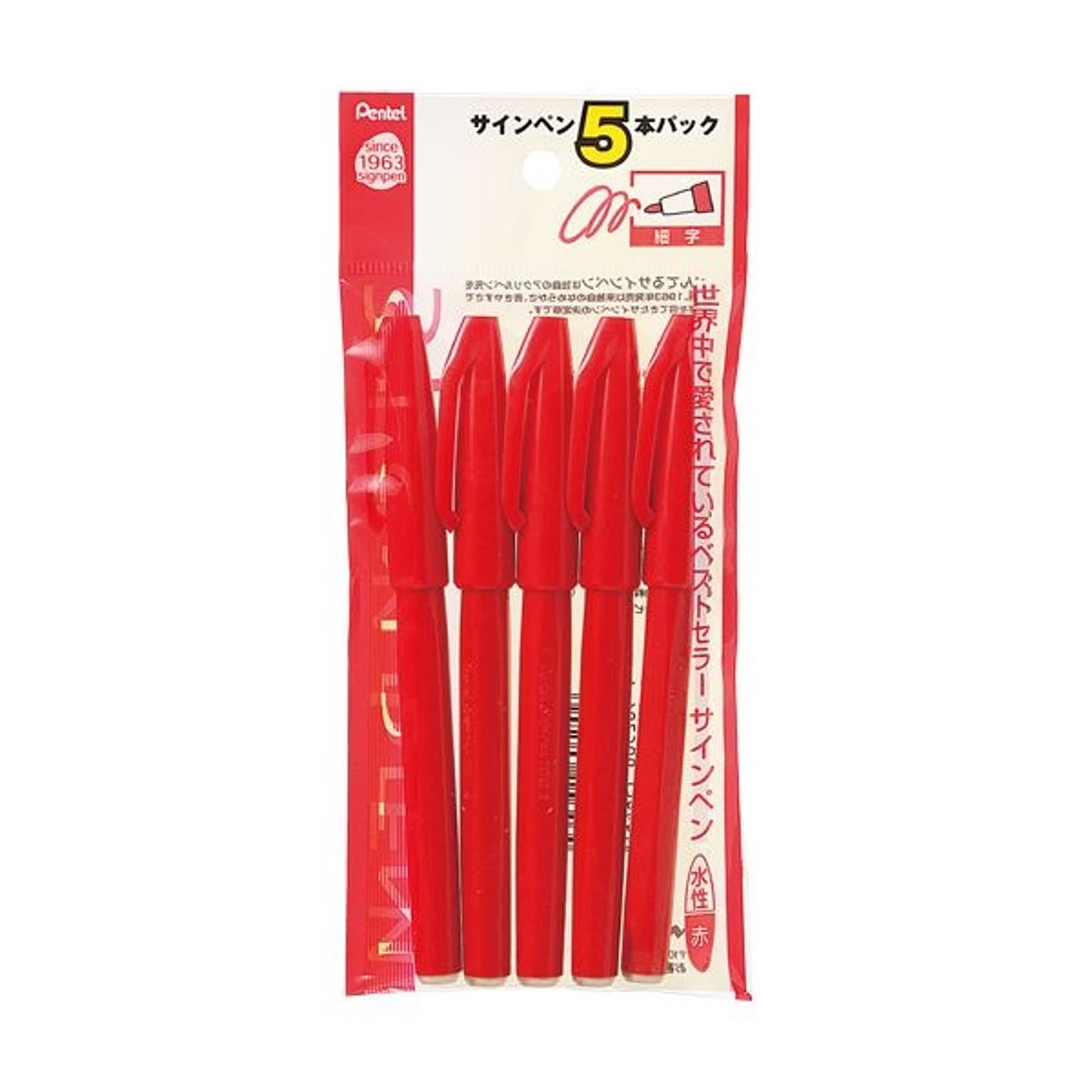 (まとめ) ぺんてる 水性サインペン 赤XS520BD5 1パック(5本) 【×30セット】