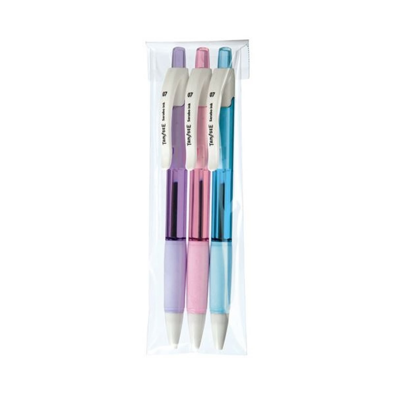 (まとめ) TANOSEE ノック式油性ボールペン(なめらかインク) 0.7mm 黒 カラー軸アソートパック(3色各1本) 1パック 【×30セット】