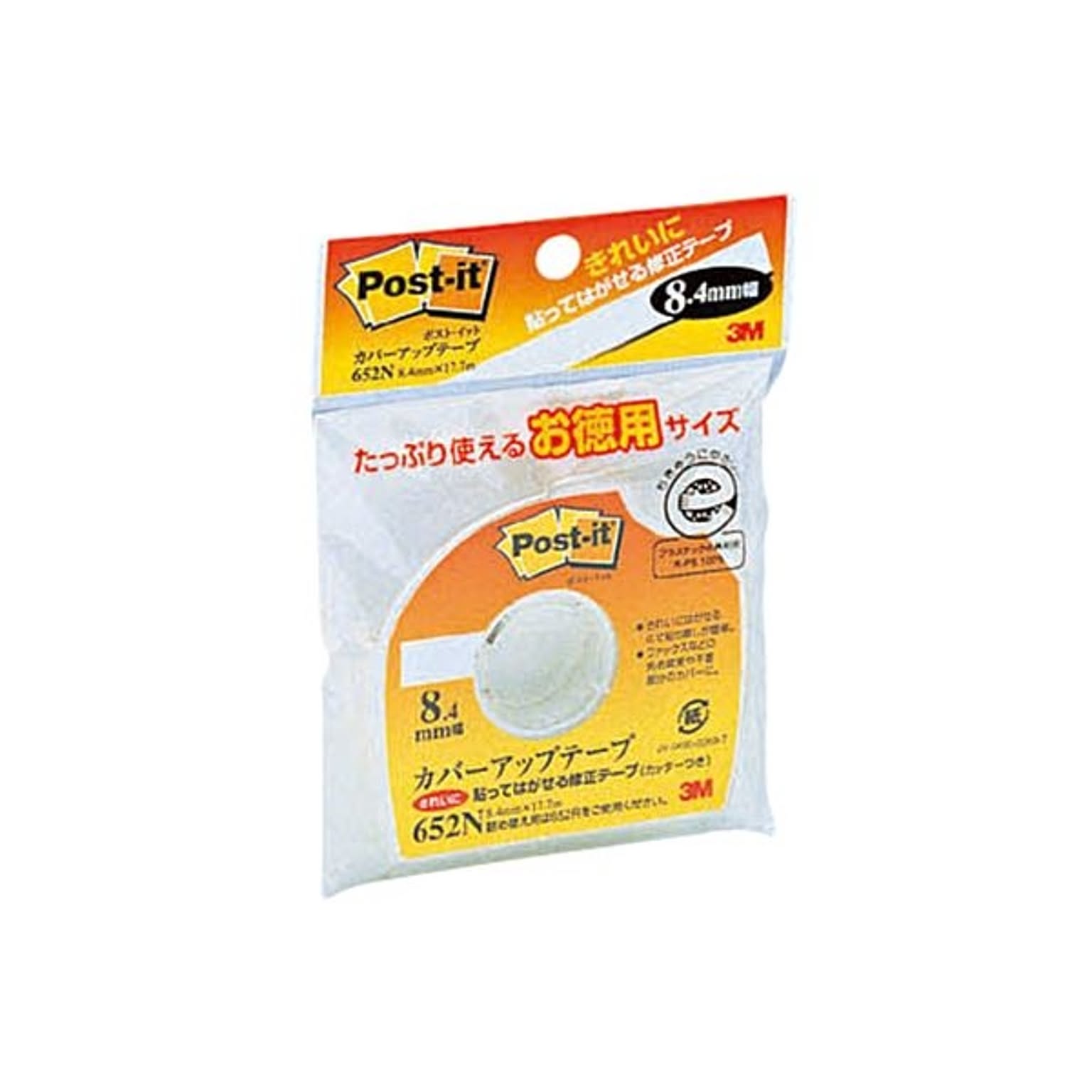 (まとめ) 3M カバーアップテープ カッター付 8.4mm幅×17.7m 白 652N 1個 【×30セット】