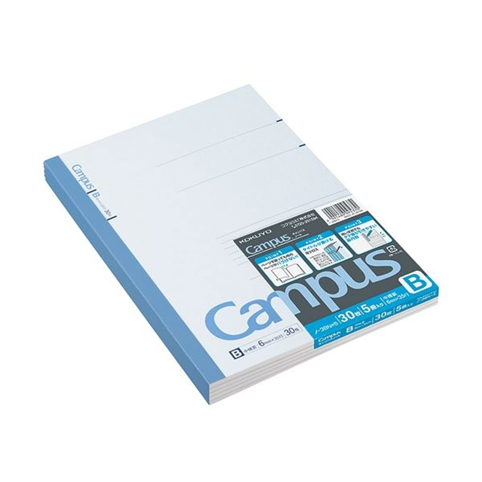 (まとめ) コクヨ キャンパスノート(中横罫)セミB5 B罫 30枚 ノ-3BNX5 1パック(5冊) 【×30セット】