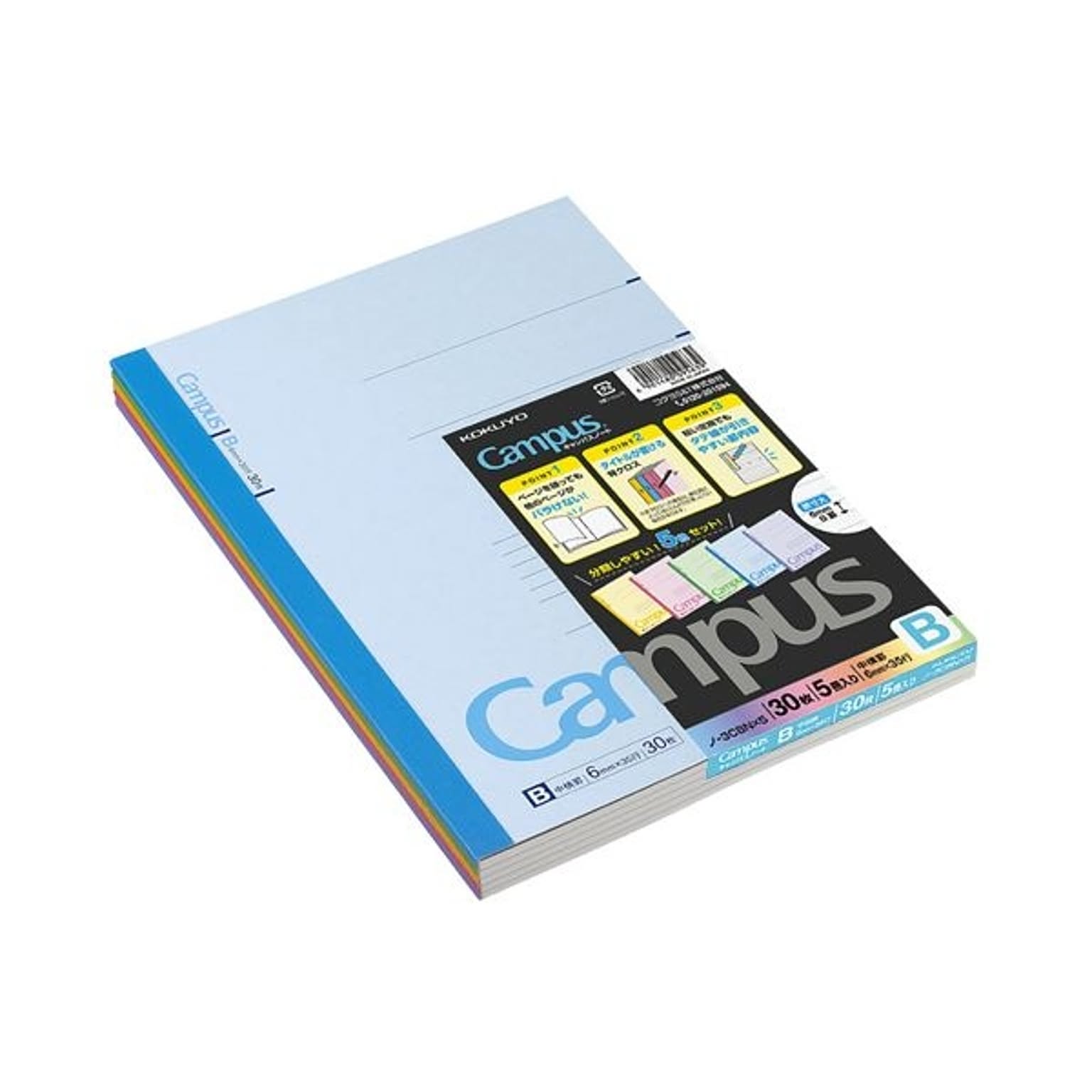 (まとめ) コクヨ キャンパスノート(カラー表紙)セミB5 B罫 30枚 5色(各色1冊) ノ-3CBNX5 1パック(5冊) 【×30セット】