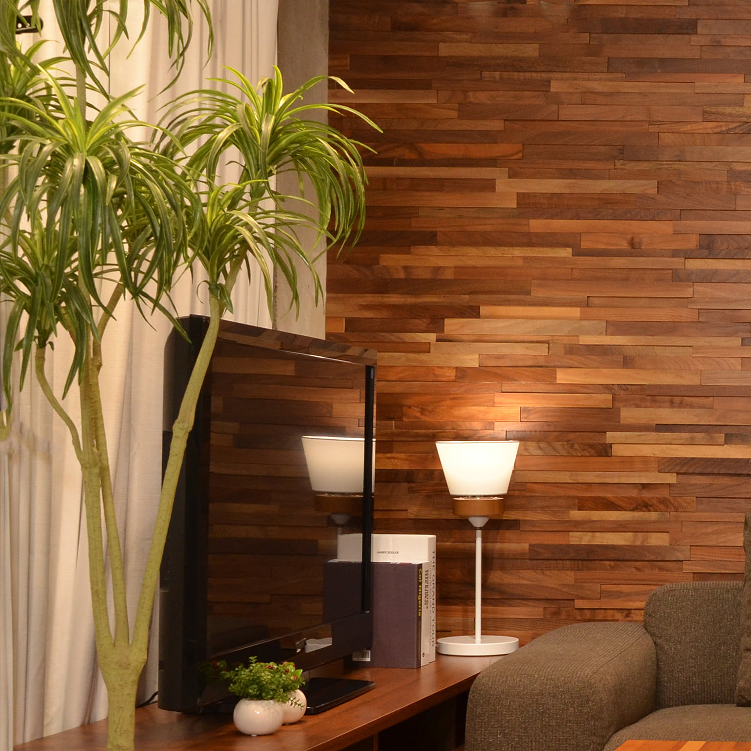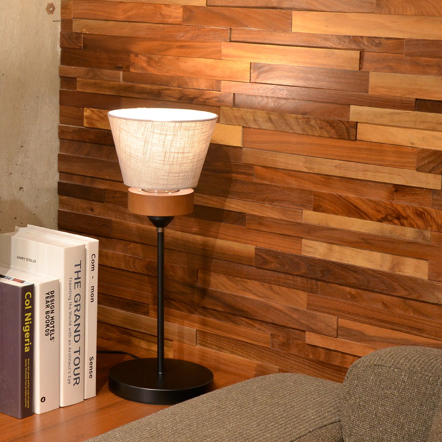 綿麻のファブリックシェードが特徴です。