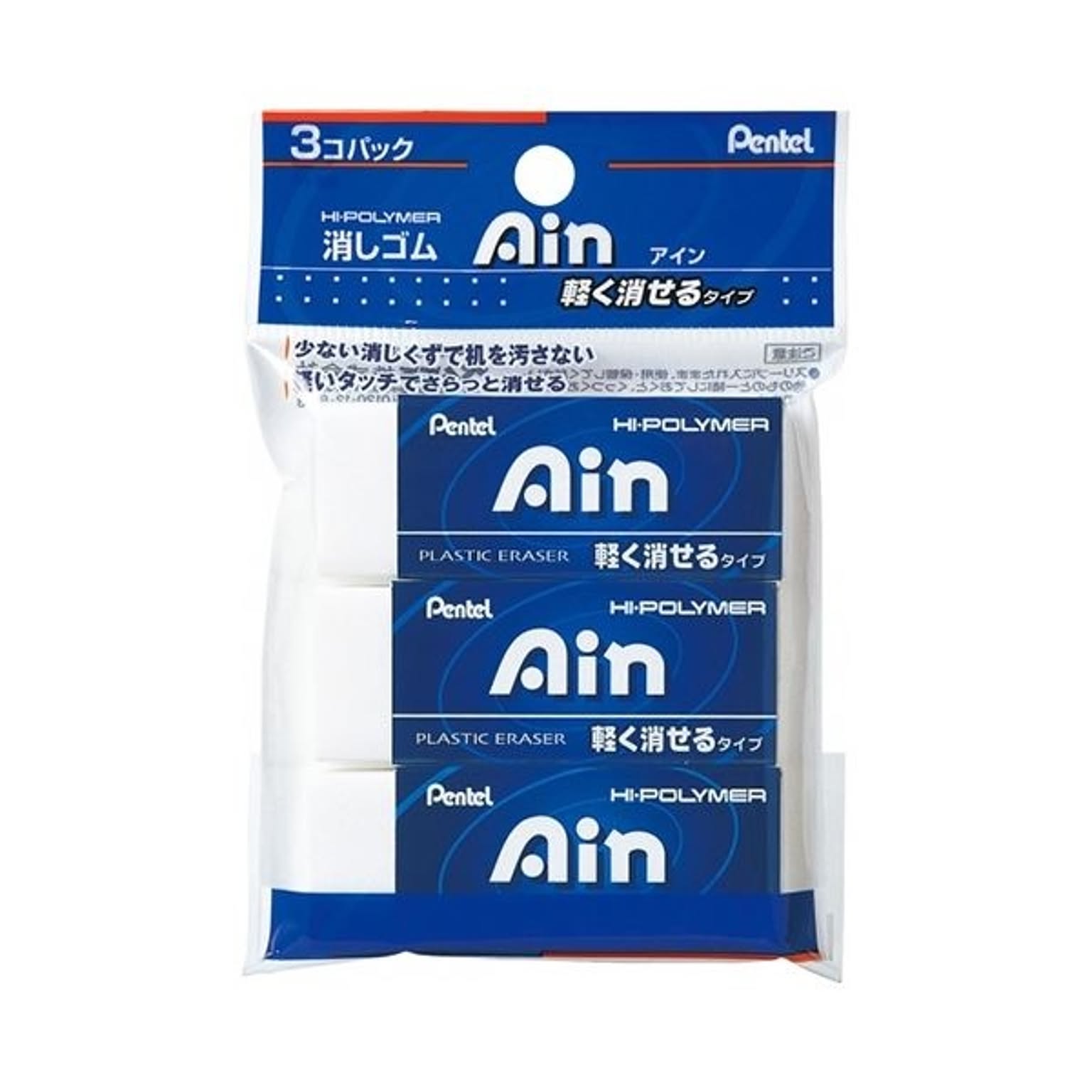 (まとめ) ぺんてる アイン消しゴム 軽く消せるタイプ バンドルパック 大 XZEAH103 1パック(3個) 【×30セット】