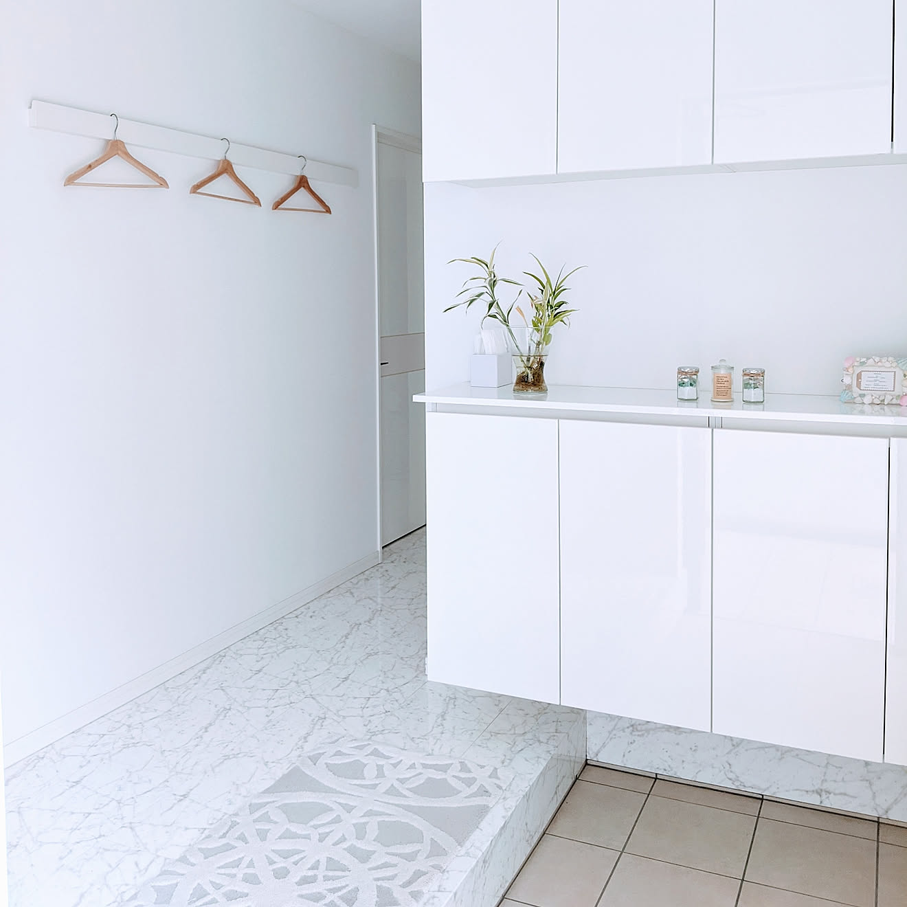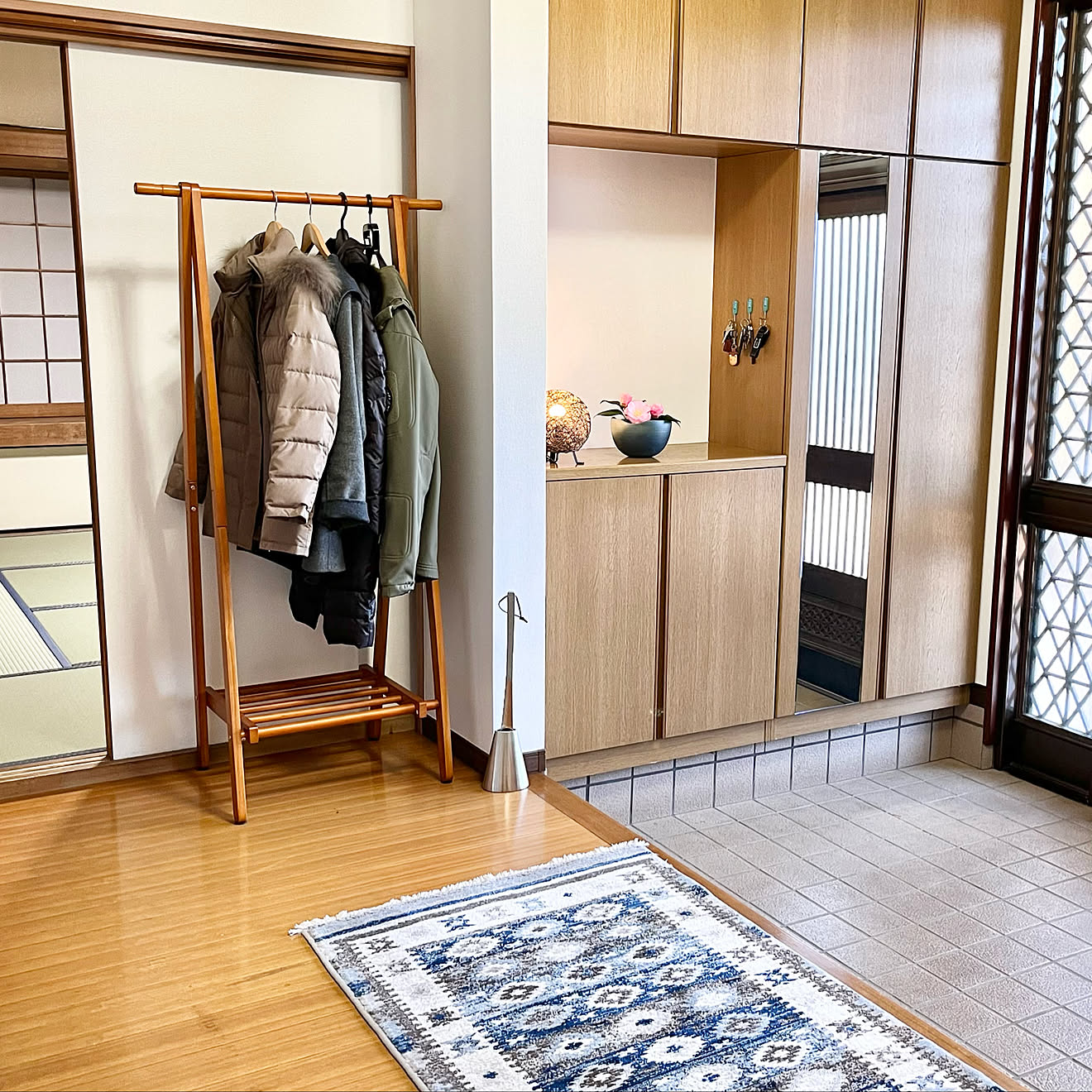 置き場所を作ってしまうと空間が狭くなりがちですが、シンプルでコンパクトなアイテムを取り入れれば、すっきり感を保つことができますよ。壁に長押を設置して掛ける場所を作るというアイデアもおすすめです。物があふれないように整理して、開放感のある玄関でお迎えしたいですね。