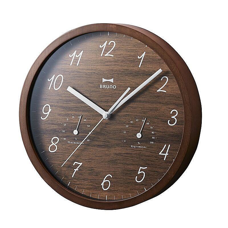 BRUNO ウッド温湿ウォールクロック / ダークウッド