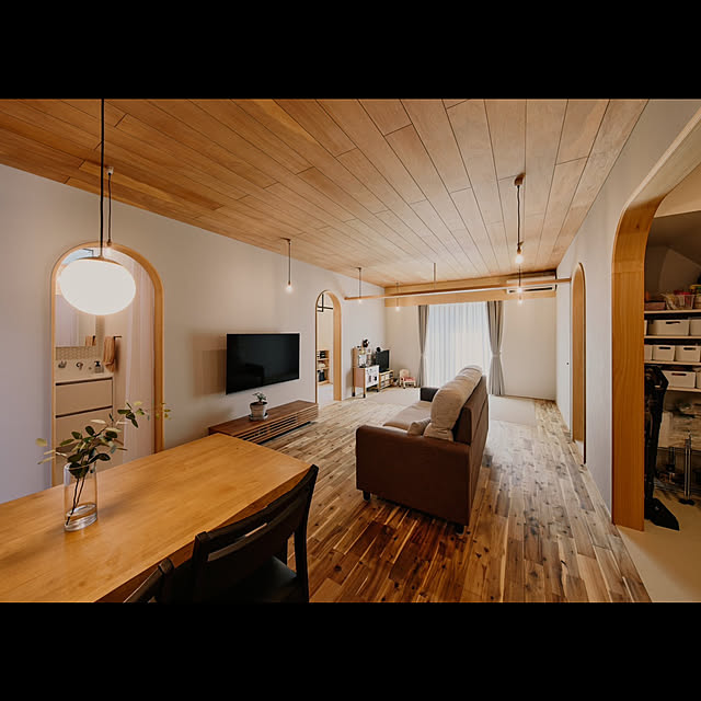 Ampoule シーリングライトAVAROS🤎 1枚目Warm(電球色) 2枚目Cool(昼白色) 3枚目Mix すべてレベル3の50%の明るさになります💡✨️ 昨日のpicと同じ明るさレベルです😉 Coolはまだちょっと暗いなぁと思いました💦 キッチンのライトをつけているのもありますが、このくらいでもWarmとMixは充分な明るさです🧡🤍 昨夜、キッチンからのリビングの眺めは、Warmの明かりがうちにはイマイチだなぁと思いましたが、リビングからキッチンを見た時にはキッチンの照明とマッチしてる気がしてWarmの明かりも合ってる気がする👀💕 逆にCoolがなんだか違うなと🤔 結局Mixに落ち着くのでありました🫠 今日も見ていただきありがとうございます😌💕 良かったらまた見てください(⁎ᴗ͈ˬᴗ͈⁎)♡♡♡
