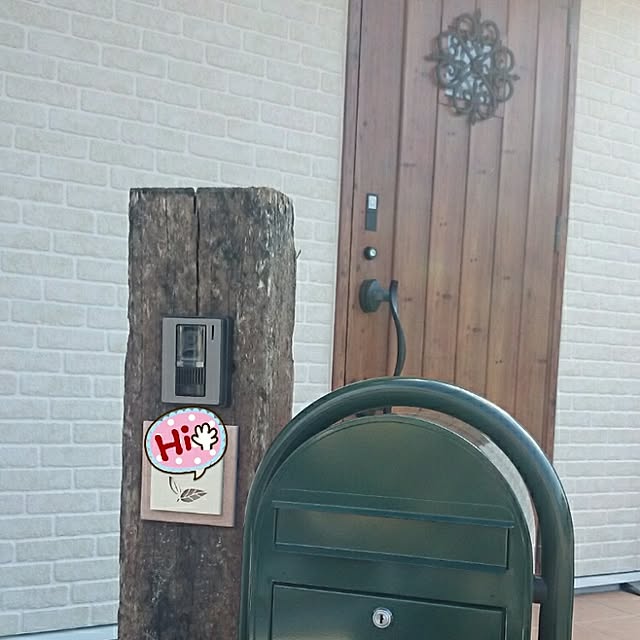 郵便ポストを付けてる板は左官さんの手作り😊 鋼管にビスを打つ作業が大変だったみたいで( ´д`) ありがとうざいます✨大切に使いますね💕
