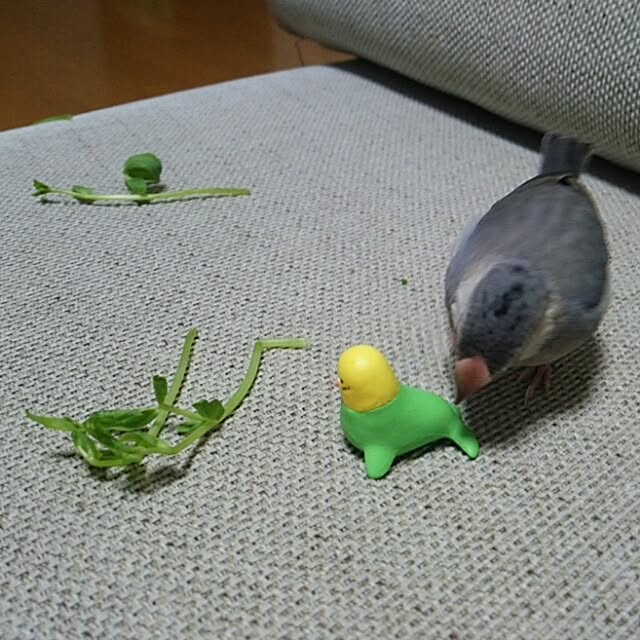 豆苗です。初めての豆苗。f^_^;。一度食べて水を入れた器に置いておいたら、アッと言う間にふんわり、こんもりフサフサして可愛いな。