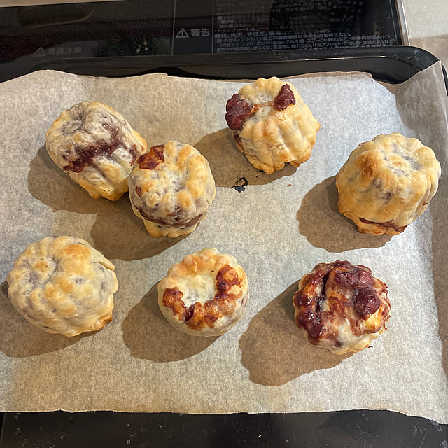 ダイソーのシリコンの型(300円)を買って、ちぎりパンを作ってみました♪ 中はもちろんあんこ♡ 絵は下手っぴですが、ふわふわで美味しくできました〜☆しばらくハマるかも!? 飽きっぽいですが、300円なら手軽にできますね(*´罒`*)♡