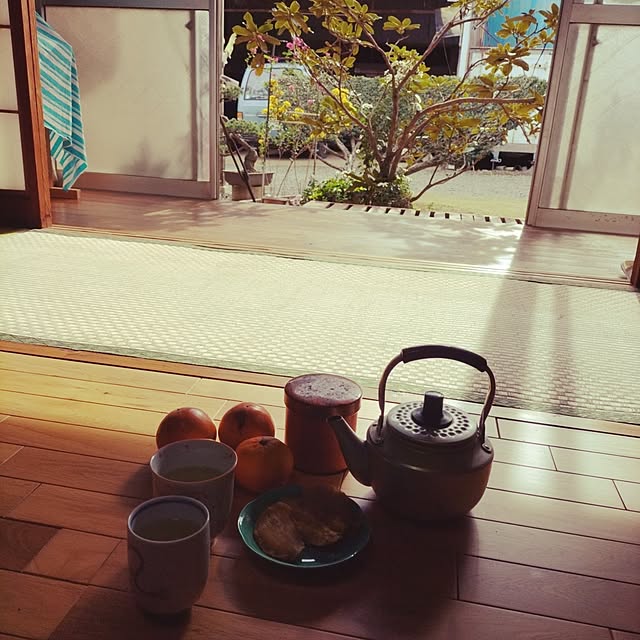 仕事帰りに寄った実家。入れてもらったお茶があまりに良い色だったので… 奥に有るのは実家の庭でなっていたレモンです。デカイです(=^ェ^=)