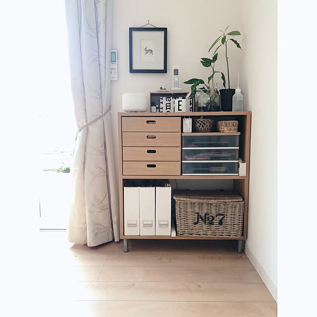 写真では、無印のスタッキングシェルフオーク色に飾っています。