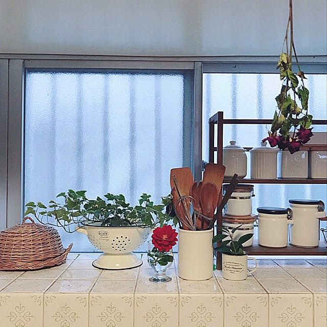 キッチンアデリアレトロコーナー🌼知らない間にアデリアばかりになりました🌻 最近購入した保存瓶には、コーヒー、紅茶、麦茶パック、乾物系をいれてます☕