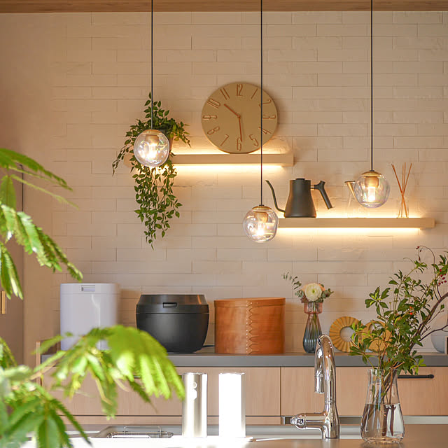 ここのタイルニッチはこの壁の主役なので、時計と小さなミィとスナフキンを置いてるだけです。