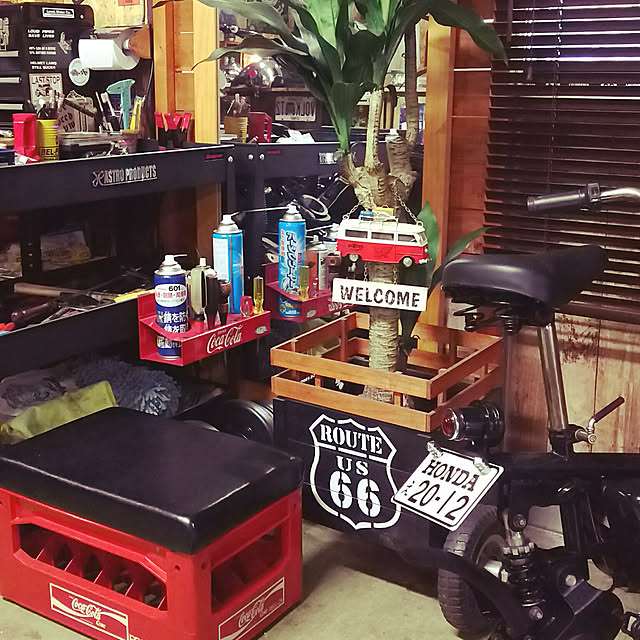 ガレージの一角。 HONDA ダックス70が仲間入り🏍 40年以上前のバイク。 名前の通り、小さくて可愛いバイクです❤️