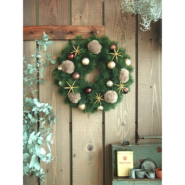 お久しぶりです 夏の投稿から冬に飛んでおります😟 何か作った時だけの投稿のになってます😅 今年のリースです ブラウンでまとめてみました♪ ダイソーでオーナメントとファーのポーチを買ってきて ポーチからボール5個作り、星は竹串😂 今年も激安だな・・・