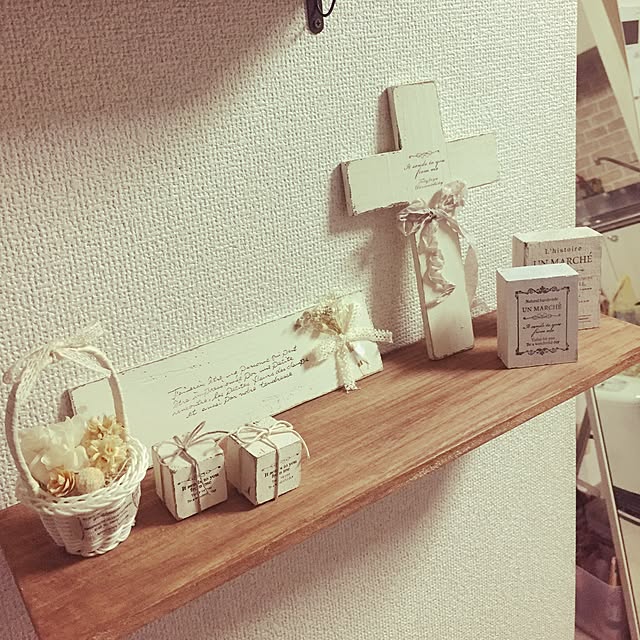 鉢、花瓶、プレート、リースなど白い花を飾りまくりました。