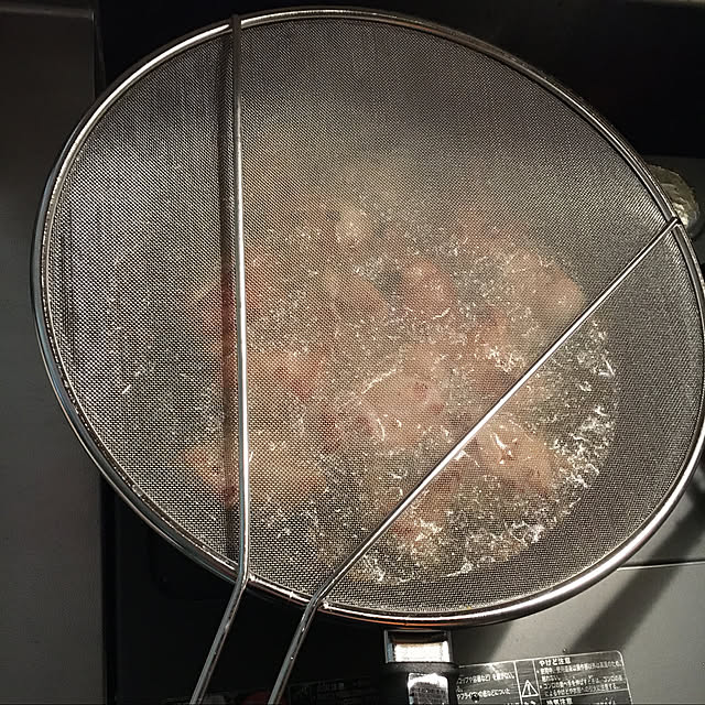 購入してから初めて、ニトリの油はね防止ネット使ってみました。 揚げたのはフライドチキン😋 確かに、油の飛び散りが少ない!周りも床も使わない時に比べると断然掃除が楽‼️ もっと早く買っておけばよかったなあ😅