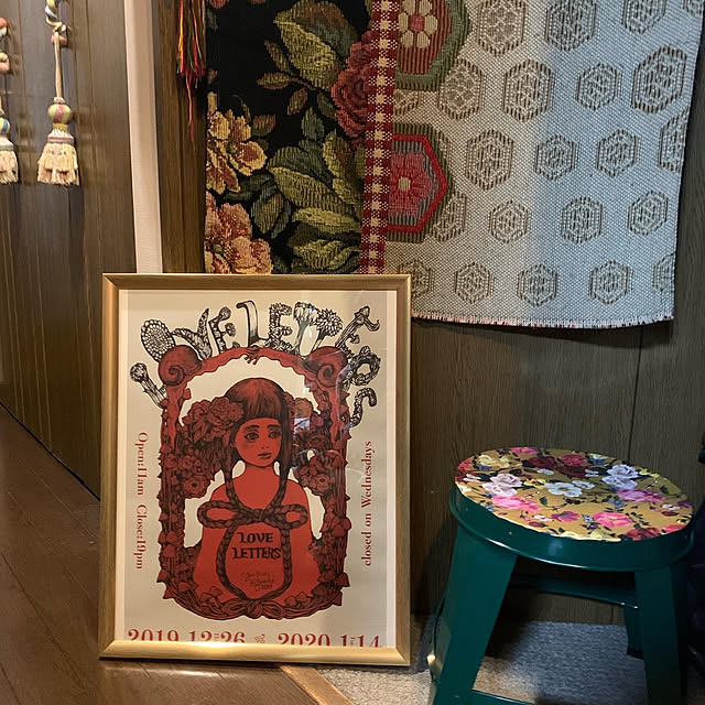 ポスターはヒグチユウコさんの「ラブレター」。ナタリーレテのスツールを花台代わりにして。