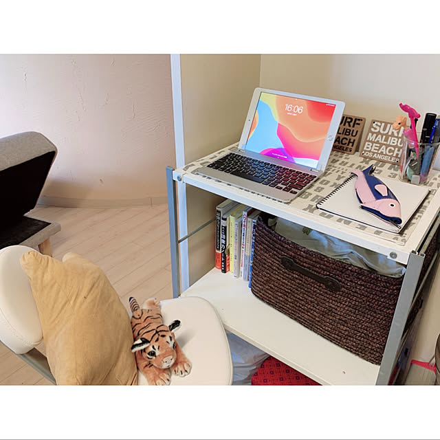 意外と気に入っているリビング階段下。 キャスター付きなので、明日は別の場所に移動してみようかな。