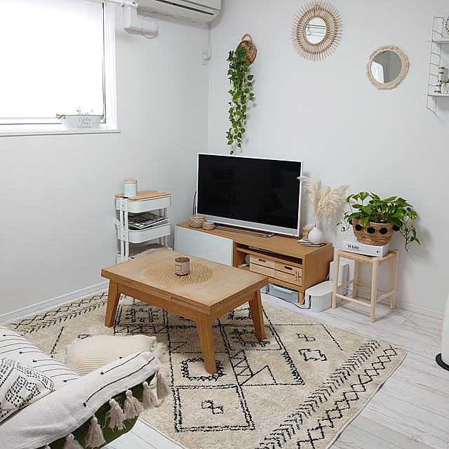 リビングの間仕切り壁に、壁掛けグリーンを設置しています。 下のは本物の観葉植物で、上のはIKEAのフェイクグリーンです。 もう少し増やしたいですが、あまりごちゃごちゃしないように今はこれだけです。