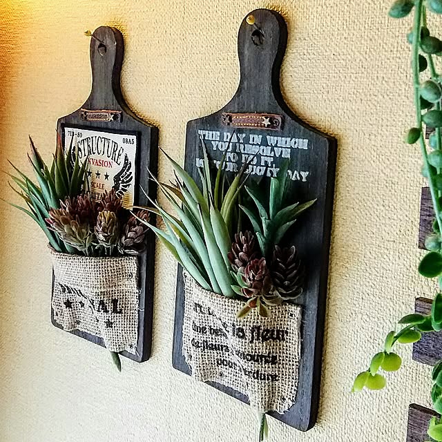 ずっと作りたかった壁掛けグリーン♡ 100均木材で作りました(o^^o)