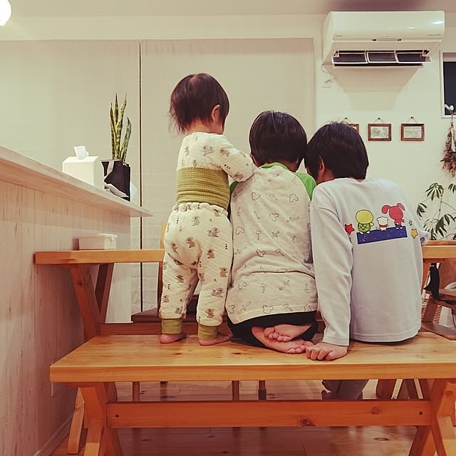 リビング学習をさせたいと、自宅を建て直す際希望があり、ダイニングテーブルと同じ高さにカウンターをつけてもらいました👏