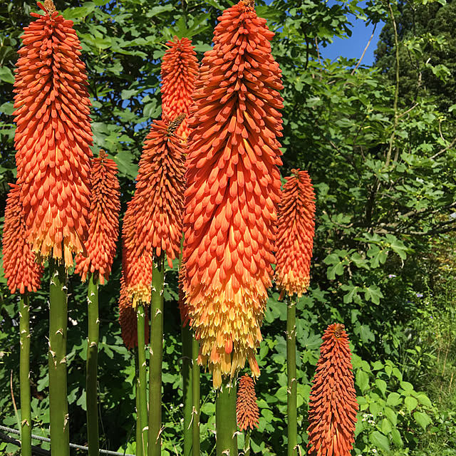 おはようございます^_^ 庭のトリトマの花咲きました。 今年は根元からカットしたので花数が少ないです。