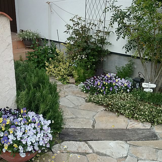 春になり庭のパンジー・ビオラはふんわり優しい色合いに♡ 寄せ植えに仕込んだヒヤシンス🪻(pic2枚目)は、まだ咲いてくれないけれど、咲いても背が低くて見えそうに無いです(笑) 今シーズンあちらこちらの寄せ植えに入れたユキノシタが良い雰囲気で気に入りました〜 私の小庭は花盛りになってきました♡ なのですが〜 ほぼ愛でる事なく春が過ぎ去りそうです。 急遽4月半ばから外壁塗装する事になり。 足場を組むために小庭にある物全部退かさないといけなくなりました。 ガーデニングシーズン真っ盛りの4月に外壁塗装はかなり相性が悪いです。 すっかり誘引剪定を終えていた蔓もの植物を無理やり駐車場におろす羽目に(涙) 外壁前の手作りの花壇も壊しました! 狭い庭にぎゅうぎゅうに押し込めていたけれど、すごい物量(汗)自業自得だわと思いながらのお片付けしてます〜 駐車場に入り切るかどうかです。 なので4月前にはビオラもさよなら。 せめて写真にだけでも撮れたらな〜 と思ってます!?