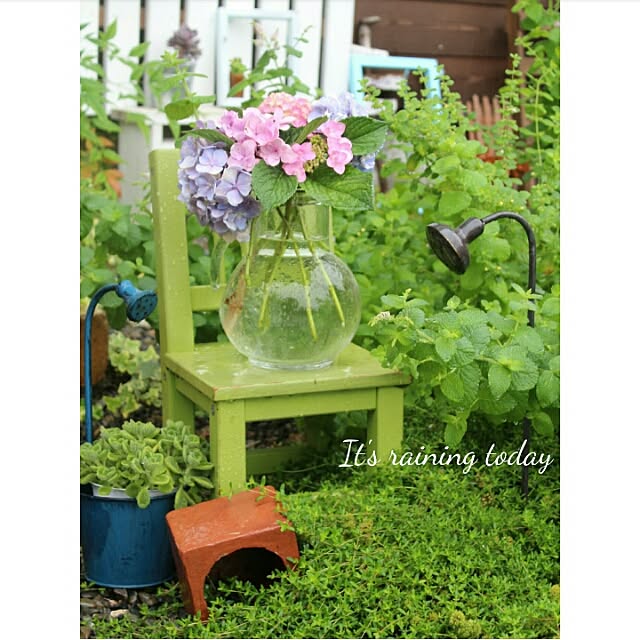 ジョーロで庭が全面が濡れるまで水やりします!ここ以外に2箇所あります!