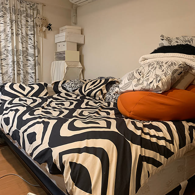 お布団にカバーをセットする時にファスナーが上部についているので、お布団を入れるのがちょっとやりづらい。でもセットしてしまえばカバーの中でお布団が寄ったりズレたりしにくいのがいいよ〜✨
