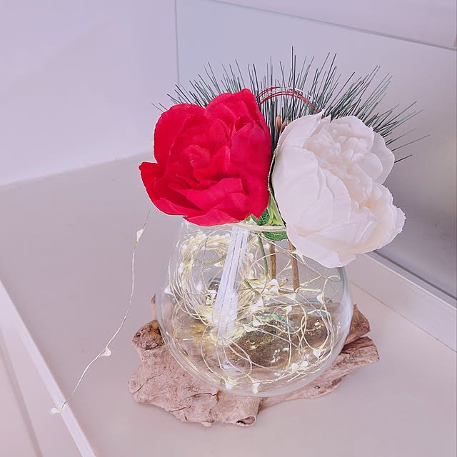 #流木にフェイクフラワー