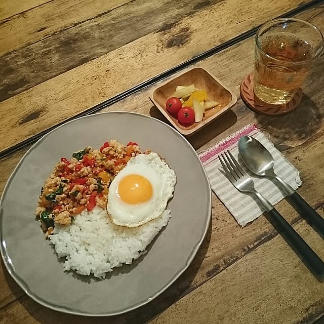 材料はお皿にあるネギ、玉ねぎ、唐辛子、トマトソース煮魚の缶詰で、調味料は魚醤とレモン汁です。これだけでタイ料理ができます。
