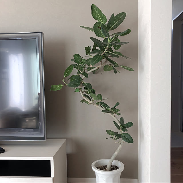 いびつな形のゴムの木を見つけました‼︎ お店で売れ残り値札も無く隅っこの見えない場所に置かれていました。私にはとてもかっこ良くみました。鉢に植え替えて葉っぱを拭いてあげるといびつな曲線がとっても素敵な雰囲気を出していると思います‼︎大切に大きく育てます(^-^)