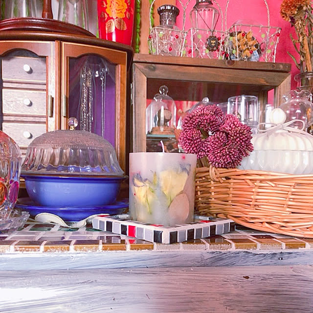 100均×3つと、家で眠っていたアクセサリーやクリスタルラインオブジェを解体したパーツで、ある物でリメイク♪