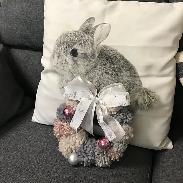 フォロワーのk…さんみたいに作れないので💦 セリアで買ったポンポンリースf^_^;