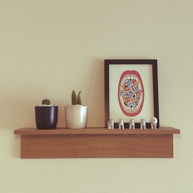 そしてピクチャーレールに好きなポスターを飾り、ニトリの"壁に取り付けられる棚"を取り付けてお気に入りの小物や花瓶(ほんの少しハロウィン仕様に🎃)好きな香りのフレグランスをディスプレイしています😊♩.。