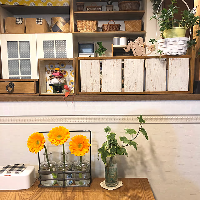① ダイニングテーブルの上に ガラスのフラワーベースに