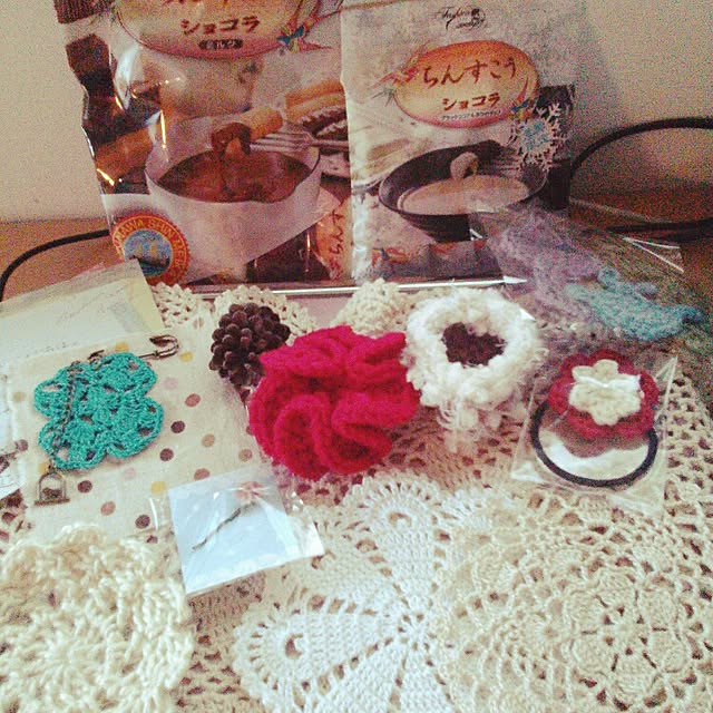 仲良しのryoco ちゃんから、素敵なものがたくさん届きました!包みを開けて感動する声がこどもらをびっくりさせてしまうくらいの完成度の高いかわいいアミアミ!!!しばらく、眺めておきまし~(*≧∀≦*) お菓子もありがとう(*≧∀≦*) 今週も頑張るぞ~(*^^*)