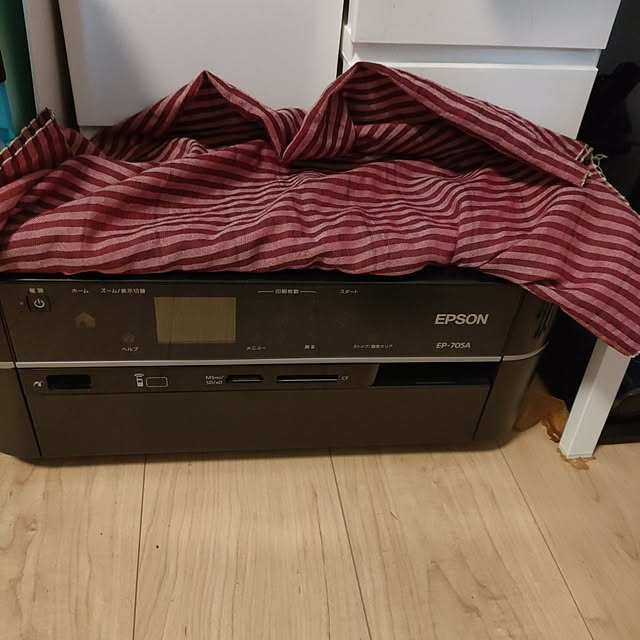 ほぼ写ってませんが、プリンターはデスク下に、キャスター台を作って設置。
