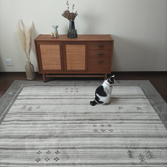 毛足が短くお掃除の時短になり、一年中使えるどんなお部屋にも合わせやすいラグでした☺️