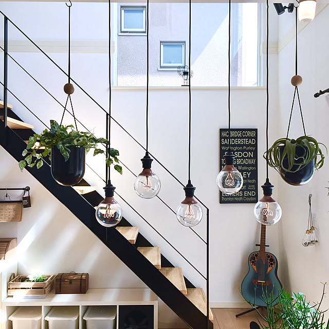 我が家の顔であるIKEAライトで100枚目記念picです(^^) ライトの両隣にあるのは、フライングタイガーのハンギングプランター♡ 存在感めちゃめちゃ有りの大きさです🎶