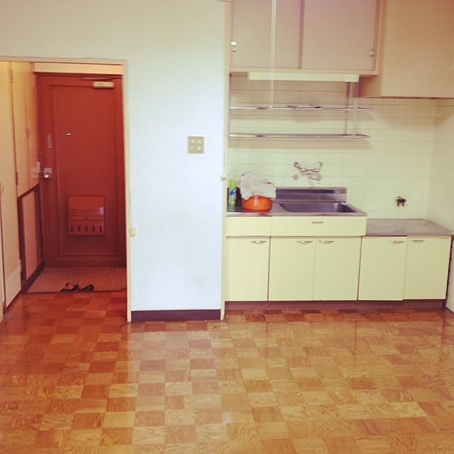 昭和キッチンを一生懸命diyしているこの景色は、やはり白コンロがないと出来なかったホワイトキッチンですな‼️(*•̀ㅂ•́)و
