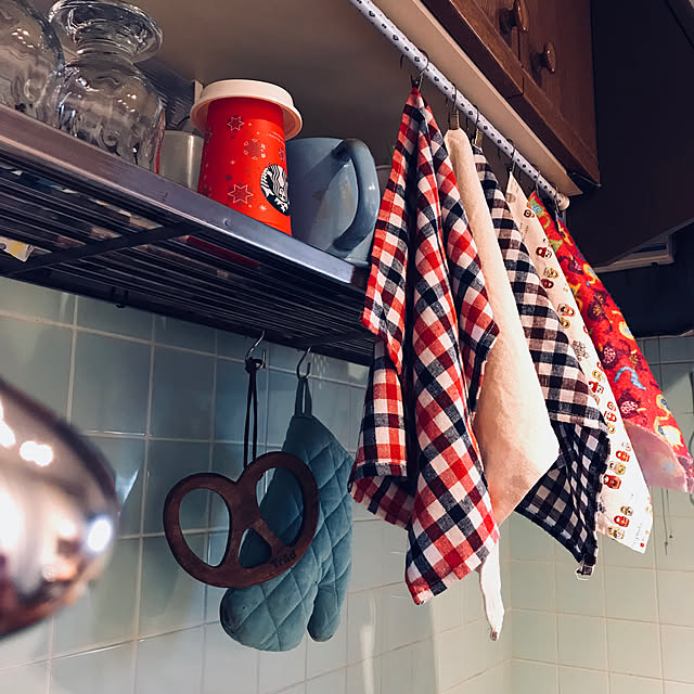 チェック柄のイベントの最終日ということでうちにある数少ないチェック柄を。 実は炊飯器置き場のイベント忘れてました。 このチェックのランチョンマットを利用したカーテンの奥が炊飯器置き場ですwww タカラスタンダードのレミューのカウンターの下。 手前がゴミ箱真ん中に炊飯器と電気ポット収納した引き出せる棚向こうの三段に食器しまってます。 この長いカウンターのお陰でキッキンはスッキリ(^^) 正面壁のカレンダーの下がWi-Fiルーターなどの電子機器がニッチになって隠れます。 リフォームした時線は全部壁の中に収めて見えなかったのにインターフォンの更新や火災報知器の新たな設置で線が露出したのは返す返す残念です( ̄▽ ̄)