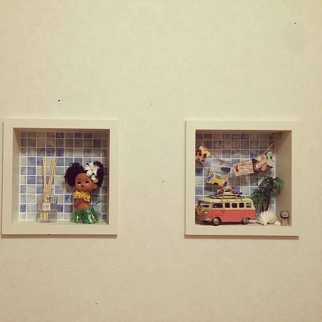 キッチンの壁、前にコナビールの瓶を飾っていた場所は棚を撤去したので、ずっと飾ってなかったポスター飾りました~❤️マイレも一緒に飾ったよ♪