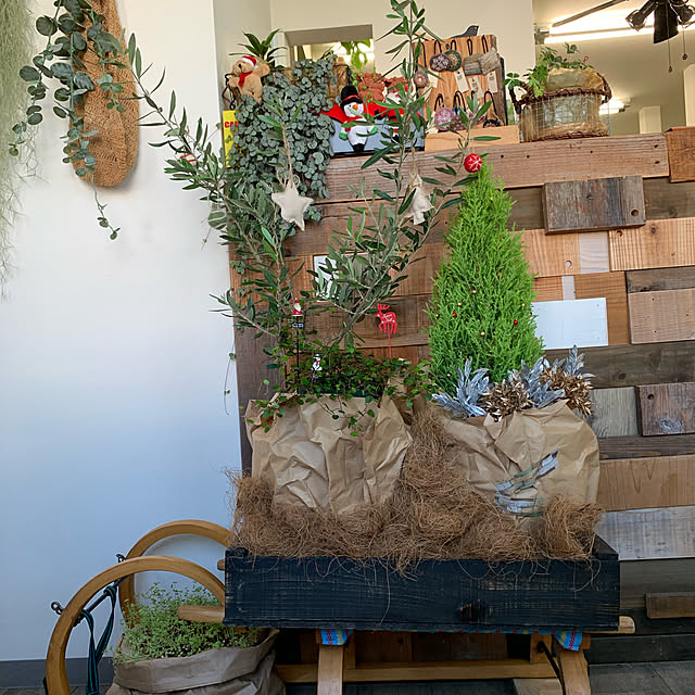 お庭のオリーブにクリスマスの飾り付け🎄